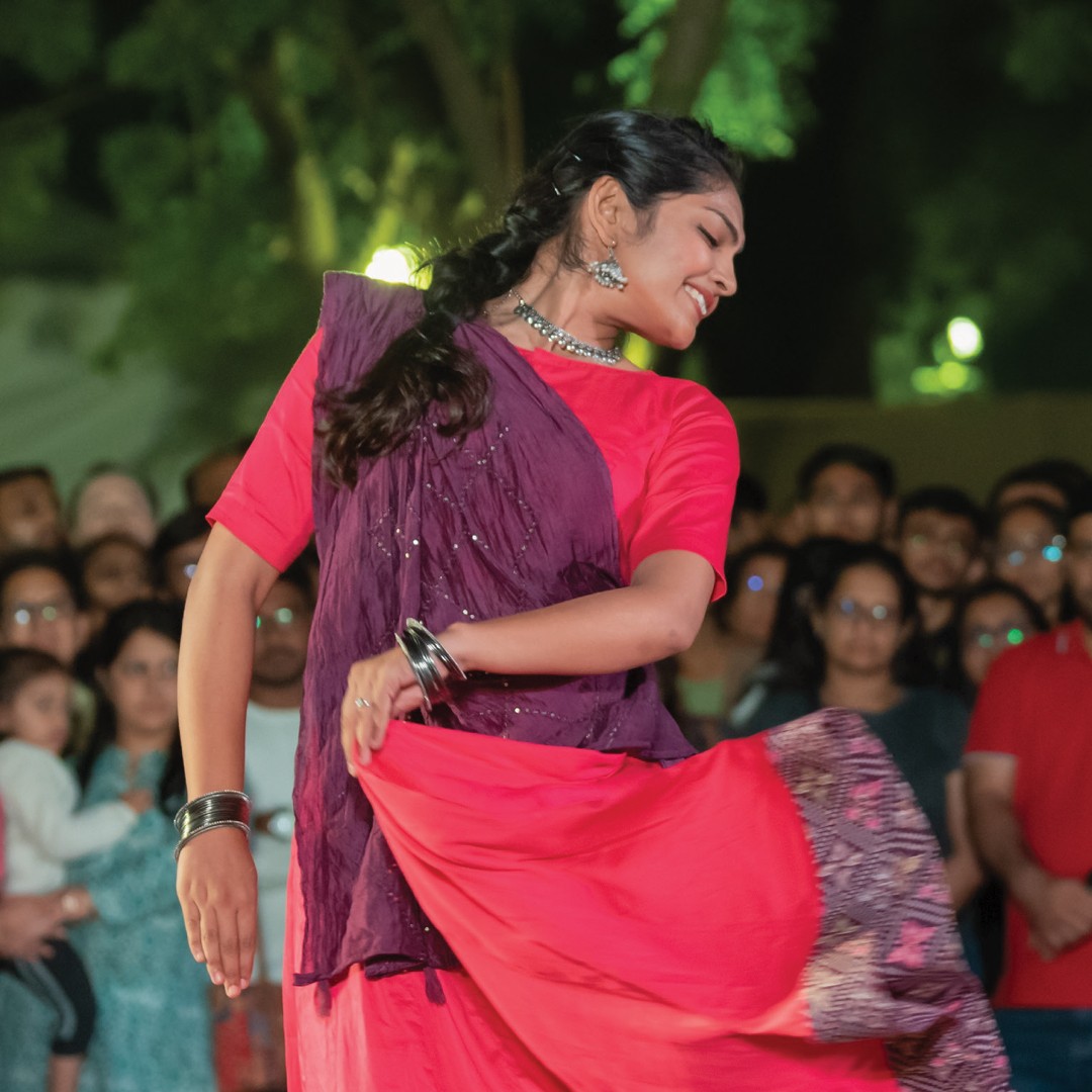 Dhara is a Kathak dancer with a decade of experience, beginning her journey in Bhavnagar under the guidance of Smt. Charuben Jani. She pursued Visharad in Jaipur Gharana under her guidance and has been training at Padma Bhushan Mrs. Kumudini Lakhia's Kadamb Centre for Dance for the past five years. She has also recently completed her master's degree under the guidance of Shri Rohit Parihar, deepening her understanding of the art form. In this edition of Abhivyakti City Arts Project, Dhara presents ‘The Story of Sun and Moon’, a Kathak production that tells the tale of the sun and the moon, who fall in love despite their differences. Through Kathak, the production captures their love story throughout different phases of the moon—from Poornima to Amavasya. Even as the sun's shadow gradually diminishes, the moon continues to shine, symbolising resilience and enduring love in the face of challenges.