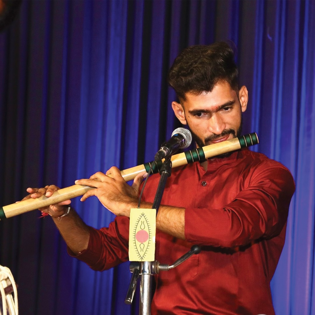 Mehul Prajapati is a Hindustani Shastriya Bansuri player. Over his five-year musical journey, he has honed his skills under Guru Pt. Rupak Kulkarni ji's guidance, even accompanying him in stage performances, deepened his understanding of Bansuri and Hindustani classical music. He holds a Master's in Performing Arts (Bansuri) from Chinmaya Vishwavidyapeeth. Mehul has won accolades like the Global Internship Program, in Dubai and is a faculty teacher at Sarvajanik College of Performing Arts, Surat. In this edition of Abhivyakti City Arts Project, Mehul Prajapati's Sangeetyatra (swar) offers a captivating journey through the evolution of music, spanning centuries. Mehul will transport audiences through time by carefully selecting Swaras, compositions, and instruments representative of each era. This performance showcases the rich tapestry of Hindustani classical music, highlighting its diversity and development over time. Through his masterful Bansuri playing and insightful selection of musical elements, Mehul will provide a unique and enlightening experience for music enthusiasts.
