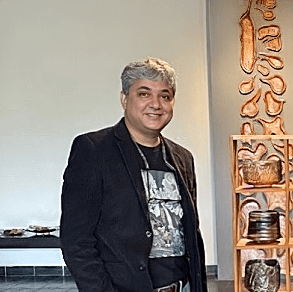 A multi-faceted artist born in 1975, Khanjan Dalal transforms clay through mesmerizing gas and wood-fired techniques, creating textural masterpieces that breathe life into ceramic art. Trained at M.S. University and Amsterdam's Gerrit Rietveld Akademie, he not only crafts extraordinary sculptures but champions ceramic arts through the Indian Ceramic Art Foundation.